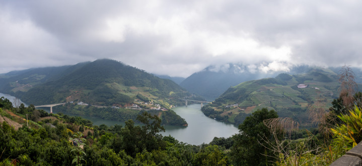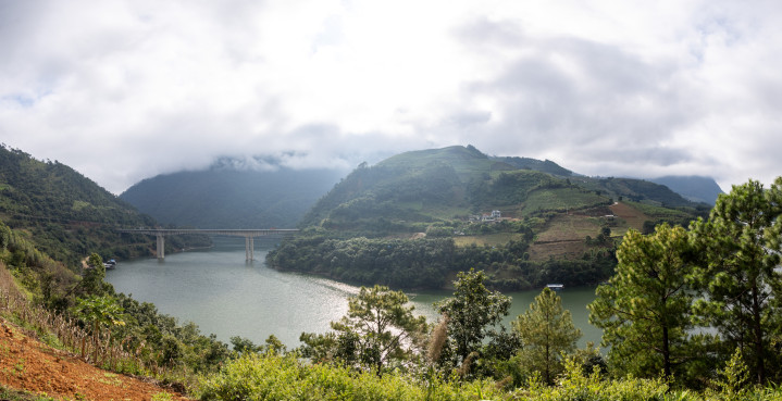 咱们没等完竣雾散,接续往前行驶,然其后到一条澜沧江支流并入干流之处。此地江水杰出爽脆,在澜沧江和其支流上齐有桥梁。这时江上雾已散开,墟落郊外齐很知道可见,仅仅较高的山顶还拢在雾中。