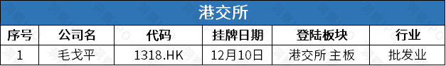 12月9日-12月15日,港交通盘1家公司上市。
