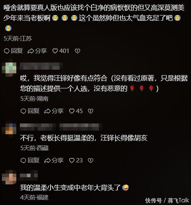 但高伟光要演《哑舍》里的雇主毕之,也照旧看得不雅众目下一黑又一黑。 剧还没播出的技艺,网友看到预报,就还是把心碎写在指摘区了。