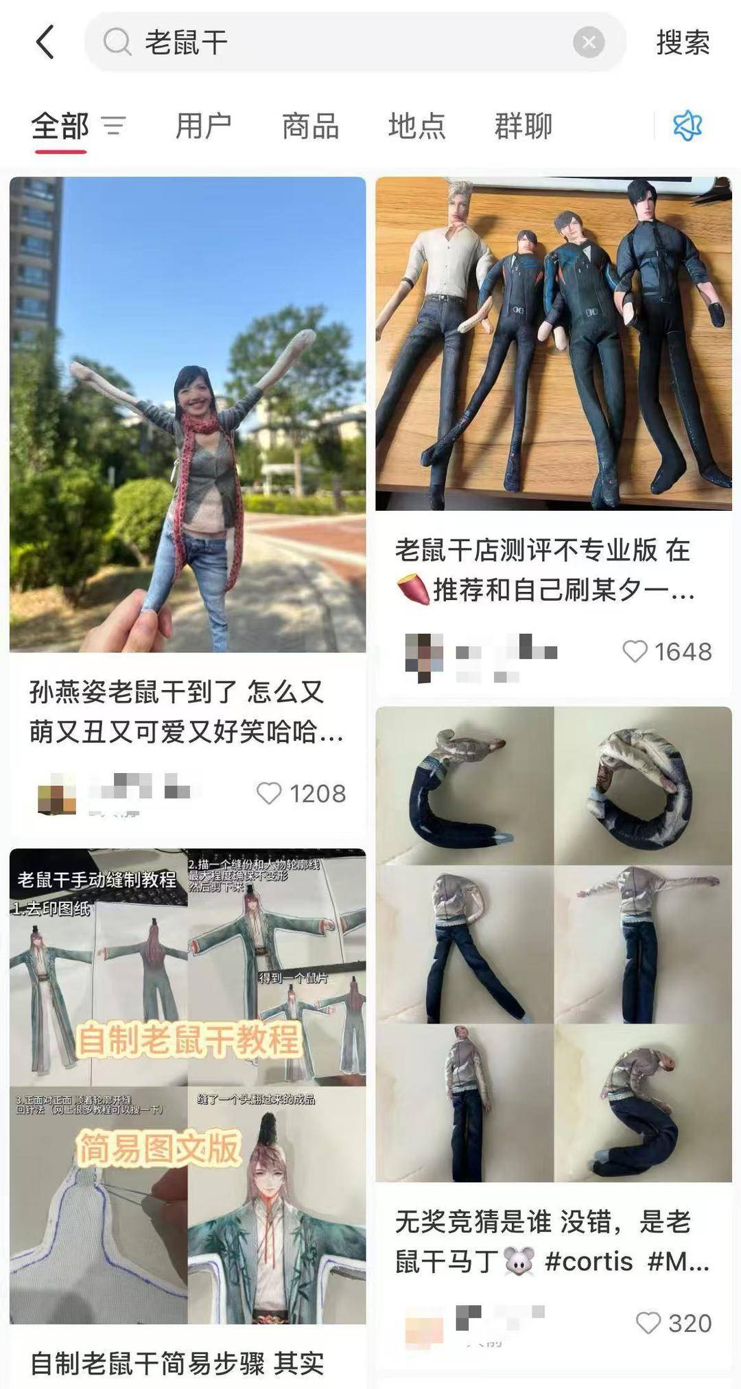 “丑得普通的败兴味,这种稀疏丑的,我高下得买回顾尝个鲜!”网友小孙告诉扬子晚报/紫牛新闻记者,我方最早看到这款“老鼠干”玩偶时,唯唯独个念念法,那便是“委果太丑了”。“最先是因为我在玩一款游戏,圈子里的许多网友王人在小红书拿游戏中变装的‘老鼠干’拍照、‘整活’。因为丑得太隆起了,放在职何一个场景下,王人很意旨。”小孙说,“老鼠干”的价钱便宜,只消十几块钱,就能解锁多种玩法,“属于花小钱就能赢得的平定,在圈内很快就传开了”。