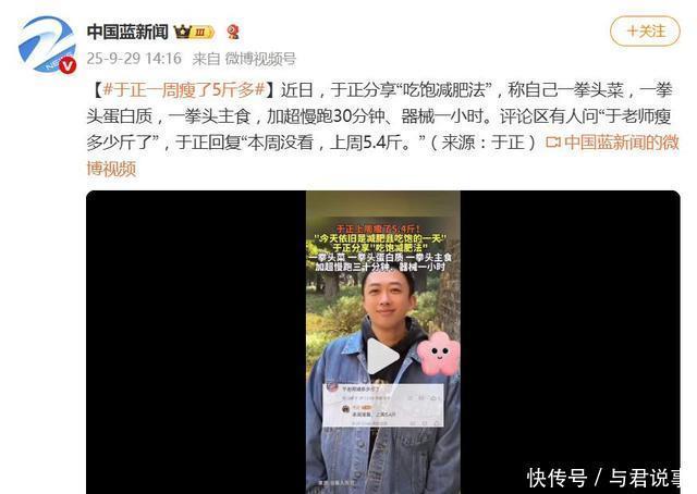 尽管于正见效显赫,部分网友却担忧这种“速瘦”是否健康。有东谈主联念念到他近期说起的“糟隐衷儿”,怀疑减重与心扉波动关连,直言“压力式瘦身容易反弹”。事实上,人人曾屡次领导,快速减重若非长期坚抓,很可能堕入“瘦了胖,胖了瘦”的轮回。 不外,于正此番共享无疑纵容了“减肥必挨饿”的刻板印象。不管战议若何,这波操作已顺利让“吃饱减肥”成为新一轮话题焦点。下一趟,这位“减肥博主”还会放出什么大招?省略比他的新剧更值得期待。