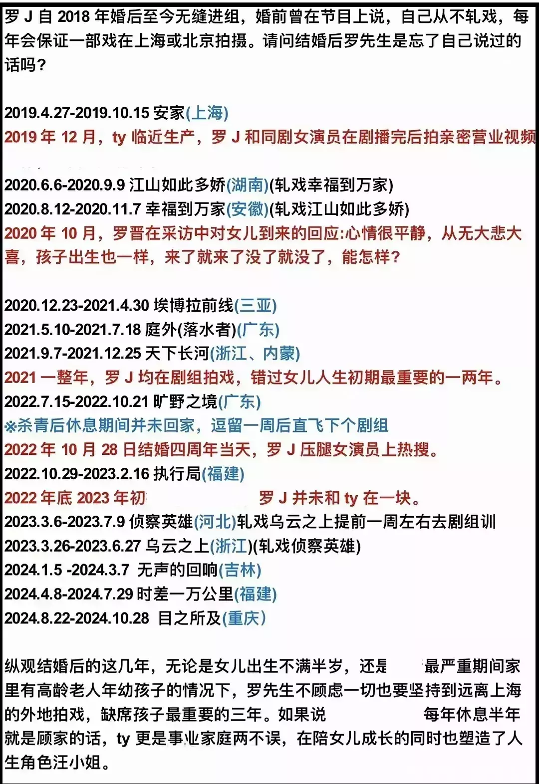 ——唐嫣粉丝对外喊话拒却娇妻论,列出罗晋婚前婚后拍戏时刻线,质疑他莫得伴随内助,还把孩子赶走给女方一家带大。