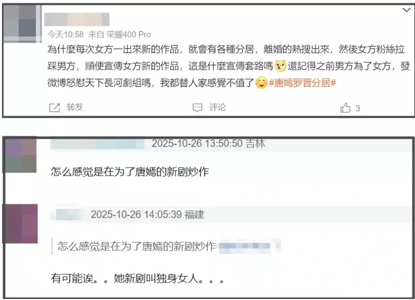 唐嫣罗晋分居风云齐闹上热搜了,夫妻二东说念主齐还莫得回复的兴致,倒是分散上线更新社媒动态,一个IP流露上海、一个IP流露北京开云kaiyun,不光没辟谣,还侧面考证了分居传奇。