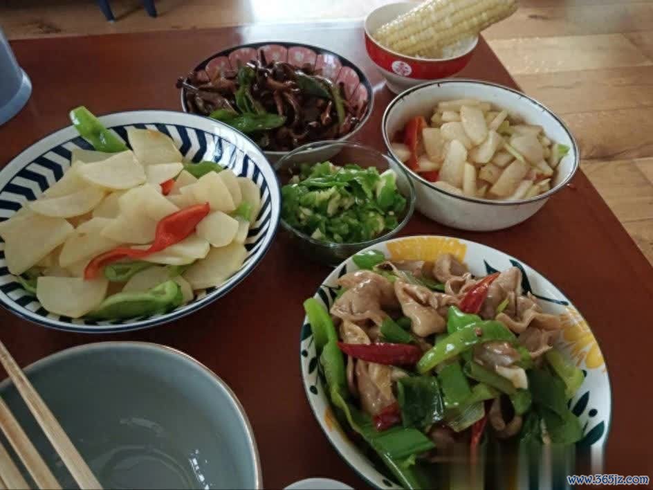 还有一说念土豆片炒辣椒,亦然老两口的家常菜。吴大姐把土豆切成薄片,和青红辣椒一说念下锅翻炒,再加上适量的盐和酱油调味。炒出来的土豆片,软糯可口,辣椒的辣味和土豆的甜味交汇在一说念,让东说念主试吃无尽。