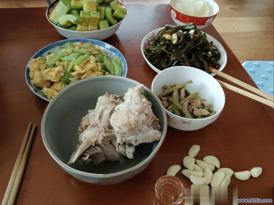 凉拌黄瓜是老两口的开胃菜。他们把黄瓜切成细条,用蒜末、醋、酱油、香油等调料拌匀,腌制须臾就能吃。凉拌黄瓜,酸辣爽口,相当开胃。