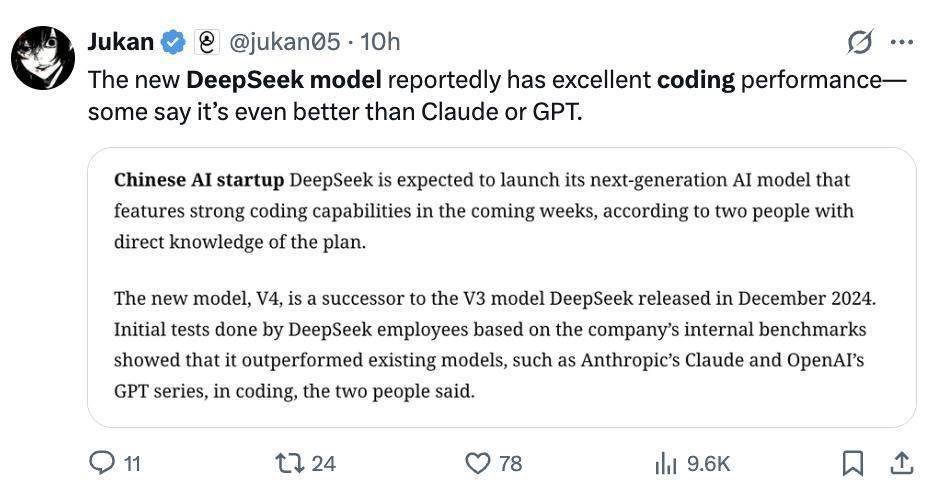 参考连合:https://www.theinformation.com/articles/deepseek-release-next-flagship-ai-model-strong-coding-ability?rc=jn0pp4