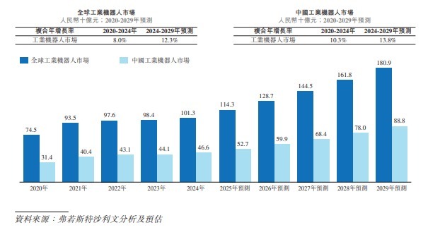 把柄弗若斯特沙利文论述,天下工业机器东谈主阛阓正不绝扩容,其中高速机器东谈主关连细分赛谈增长尤为显赫。2024 年至 2029 年,天下并联机器东谈主阛阓范畴展望年复合增长 11.7%,2029 年将达 78 亿元;天下 SCARA 机器东谈主阛阓年复合增长率展望 12.2%,2029 年范畴将达 190 亿元;相助机器东谈主阛阓增速更凸起,年复合增长率展望 30.2%,2029 年将达 266 亿元;天下高速机器东谈主阛阓年复合增长率展望 12.5%,2029 年范畴将达 115 亿元。