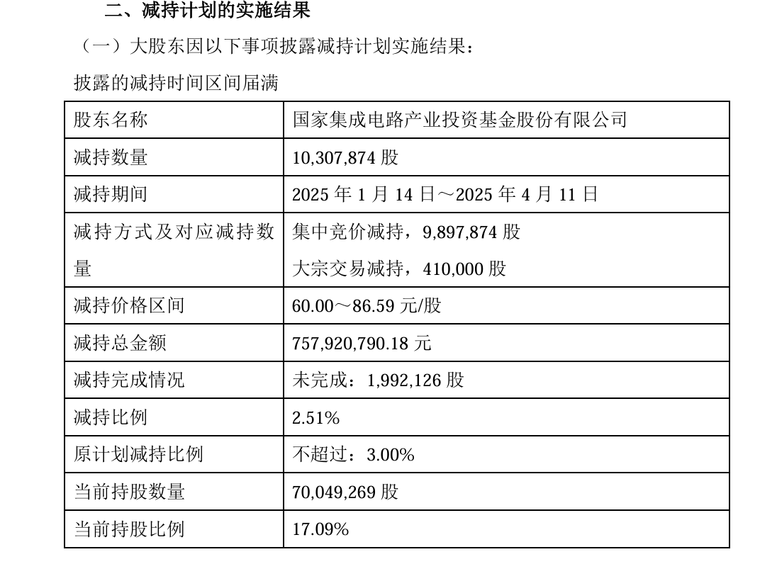 公告显现,产业基金减握价钱区间为60.00~86.59元/股,减握总金额为7.58亿元,减握原因为自己野心措置需要。减握完成后,产业基金握股比例降至17.09%,仍为盛科通讯第二大股东。
