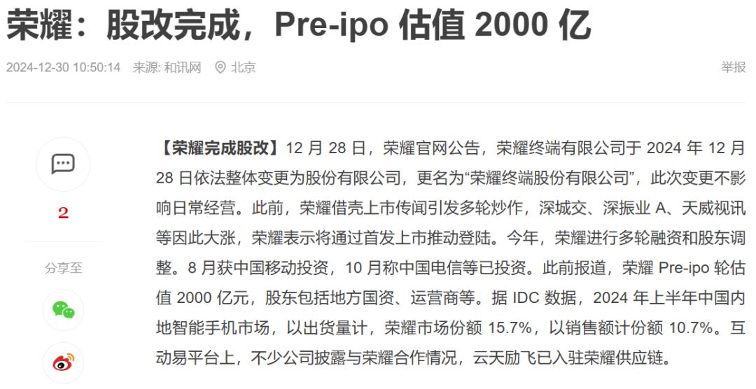 在Pre-IPO轮融资中,荣耀约2000亿元的估值相较其从华为剥离时(2600亿元)已出现约23%的缩水,直不雅反应了投资者在为其巨大梦思买单时的审慎与踟蹰。