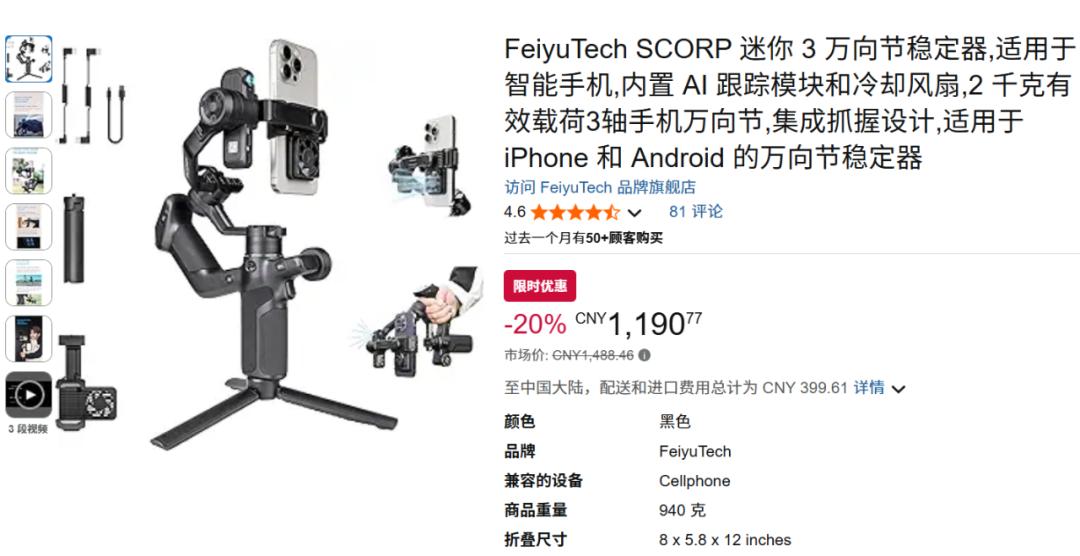 行为对比,专科云台厂商FeiyuTech,则为智妙手机云台配备了内置电扇,来搭救设置的永劫期拍摄。