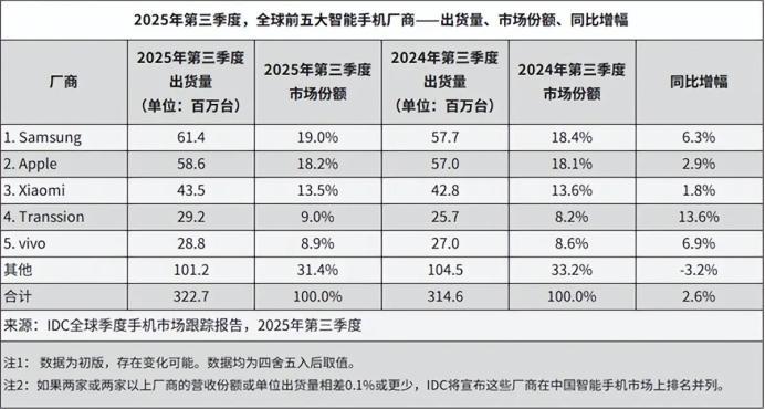 Omdia接头娇傲,2025年第二季度,全球智妙手机市集同比下滑1%,这是该行业协调六个季度以来的初度着落,而IDC也已将全年增速预期从2.3%下调至0.6%。