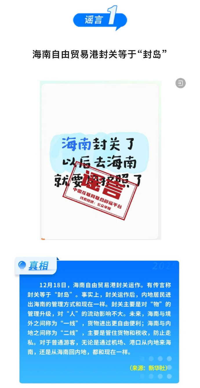 流言1:海南目田交易港封关即是“封岛”;流言2:一次性信用成就即是“信用洗白”;流言3:12306购票取消靠窗选座;流言4:激素蛋多数流入阛阓……中国互联网集会辟谣平台盘货2025年12月热传流言,阻拦流言传播空间,净化网罗生态开云kaiyun官方网站,营造风清气正的网罗环境。